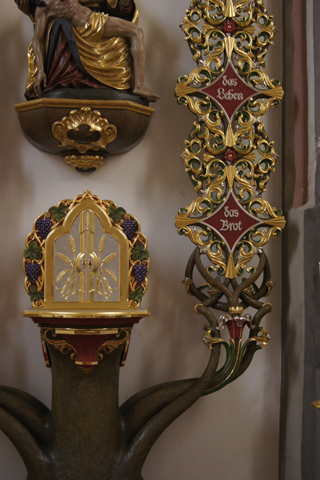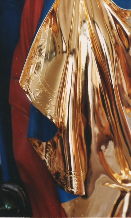 Sie findet Anwendung auf verschiedensten Figuren, Skulpturen, Ornamenten, Möbeln und Altären.