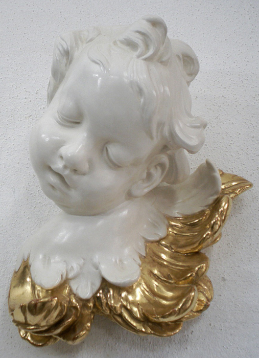 Kreidegrund, Polimentvergoldung, 23 3/4 Karat Blattgold, Polierweißfassung.