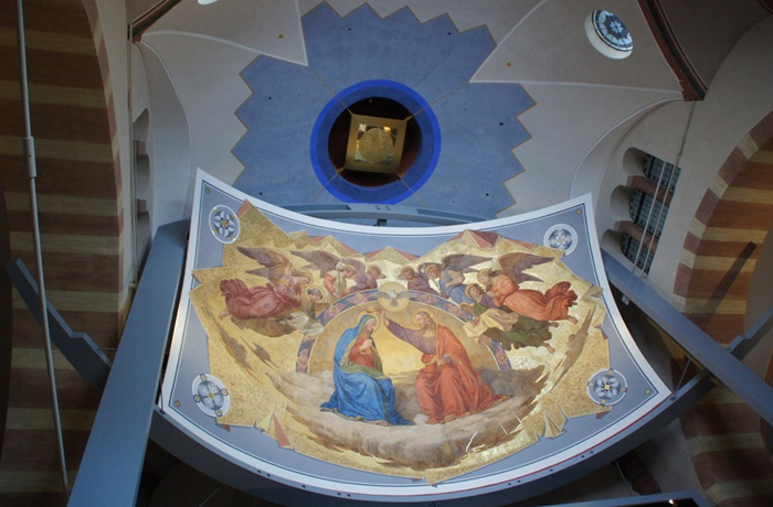 Abschlussplatte unter dem Glockenloch im Mitteljoch des Kaisersaals im Kaiser- und Mariendom zu Speyer, Größe 168 x 168 cm.